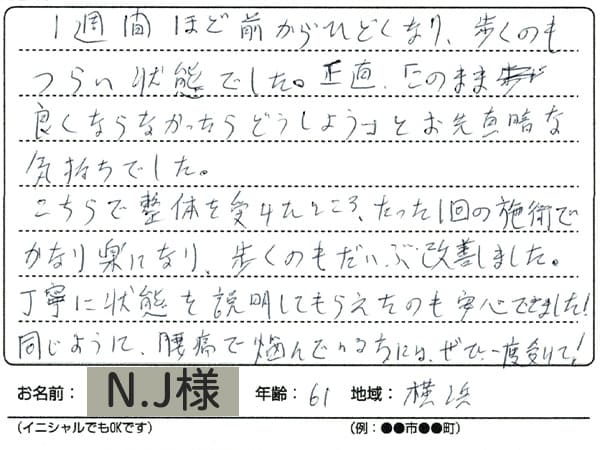 先生の凄いところは、根本原因をしっかり見つけ出し重度の痛み・悩みでも効果を出す圧倒的な技術力です。
